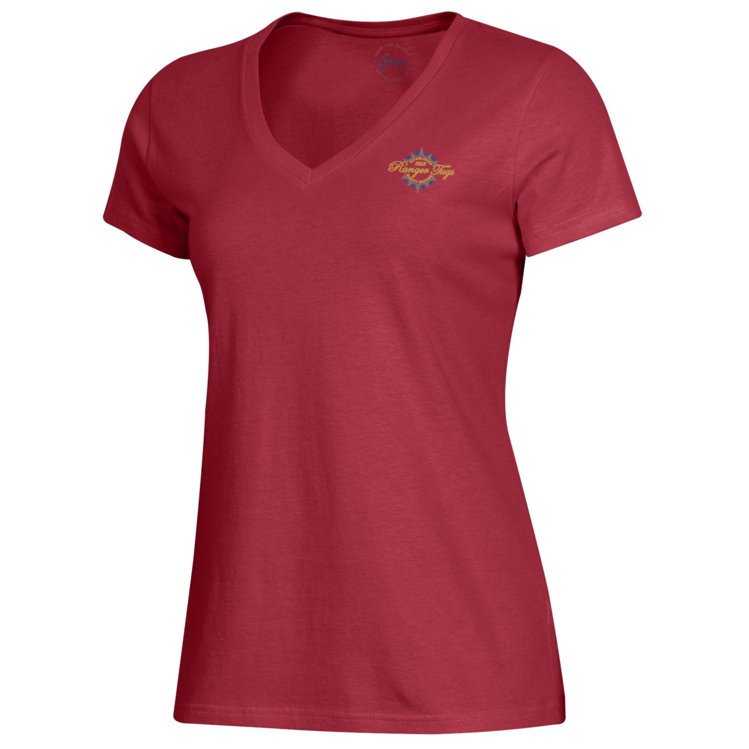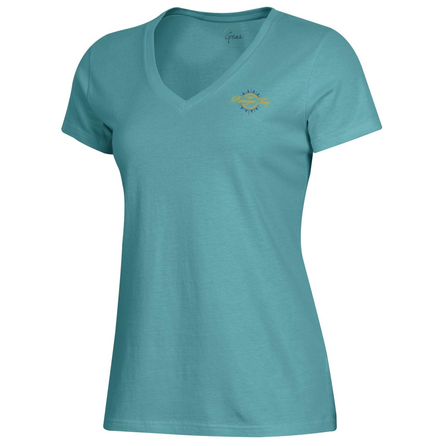 Our Ranger V-Neck Tee offers a modest, flattering neck line. Soft to the touch, this 100% Cotton sueded jersey features a 1x1 rib, 26 1/2" body length, 7 3/4" V-neck depth and heat seal back neck label.